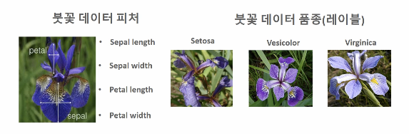 붓꽃 데이터 세트 → 붓꽃의 품종을 **분류(Classification)**하는 것 붓꽃 데이터 세트 : 꽃잎의 길이와 너비, 꽃받침의 길이와 너비 feature를 기반으로 꽃의 품종 예측
