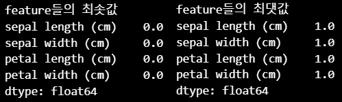 - 데이터값을 0과 1 사이의 범위 값으로 변환