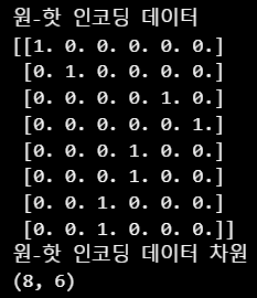 >>> 인코딩 변환값: [0 1 4 5 3 3 2 2]- 위 예제는 데이터가 작아서 문자열 값이 어떤 숫자 값으로 인코딩됐는지 직관적으로 알 수 있지만, 많은 경우에 이를 알지 못함
