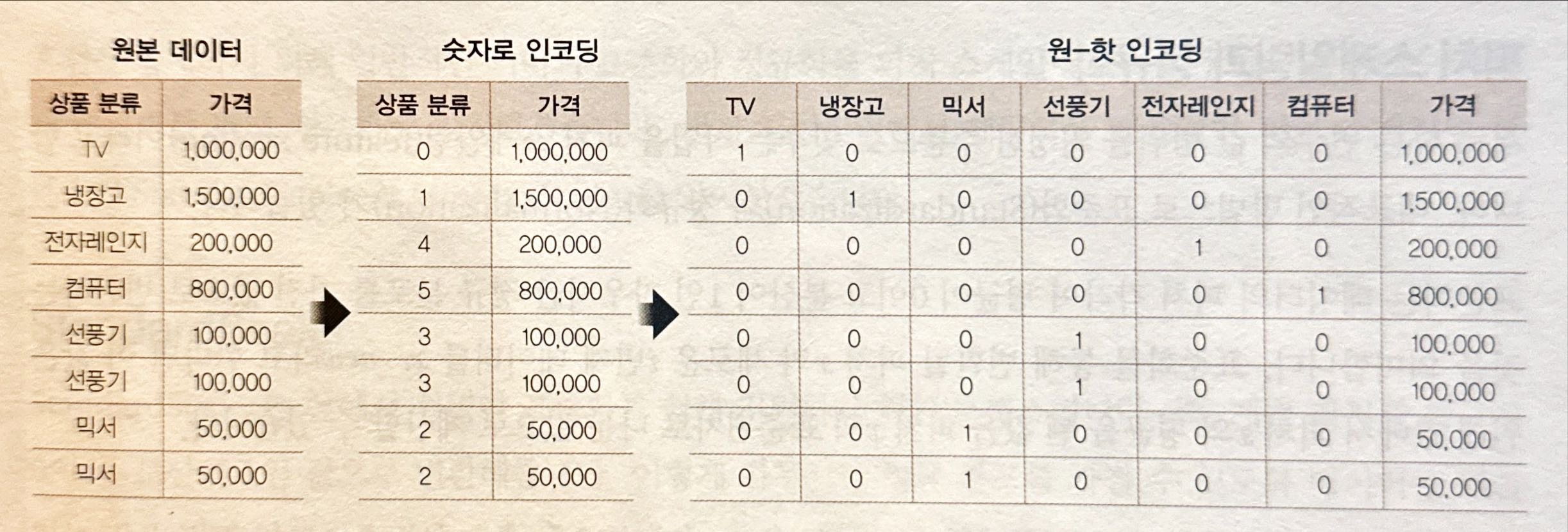 - 숫자 변환 값은 단순 코드이지 숫자 값에 따른 순서나 중요도로 인식돼서는 안 됨