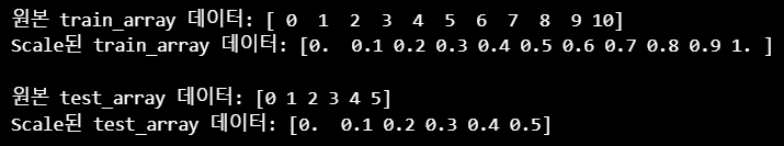 Scale된 test_array 데이터: [0. 0.2 0.4 0.6 0.8 1. ]- 테스트 데이터 세트 변환